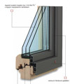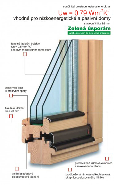 Ve vnitřní dřevěné části je uloženo dvojsklo a v hliníkové vnější části třetí samostatné sklo